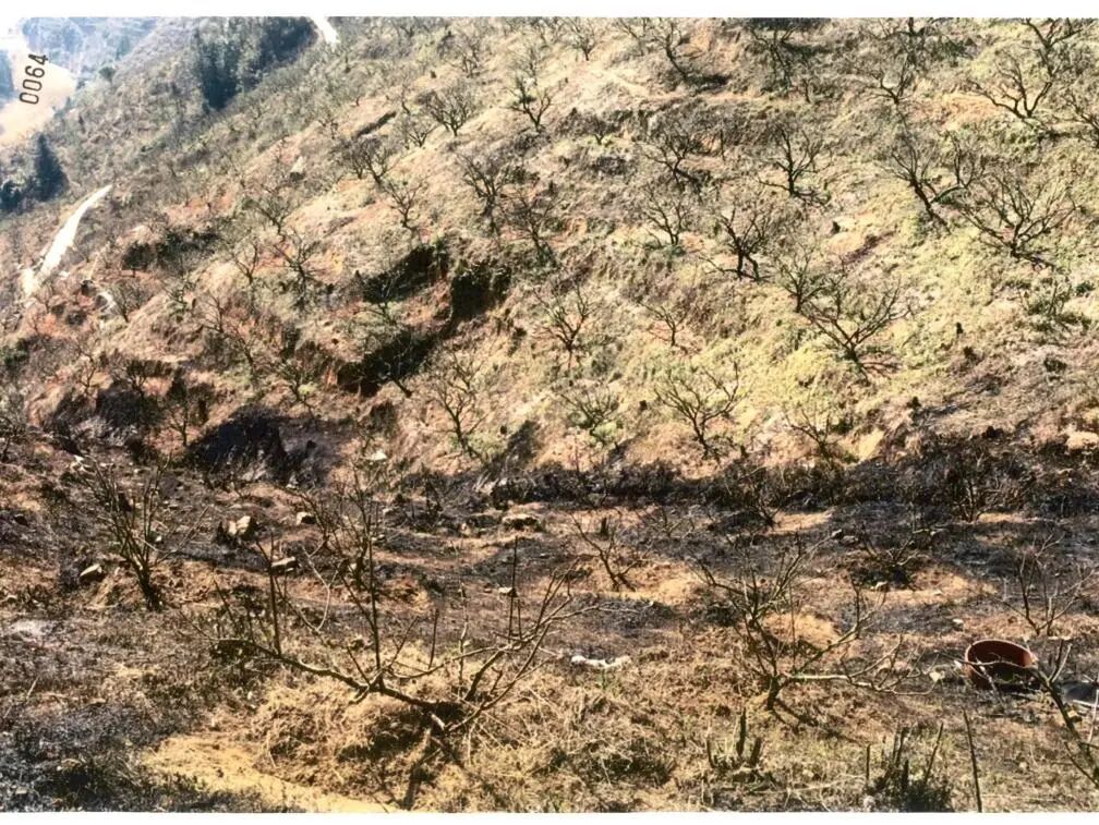 同村村民阿南不慎引发山火,火势迅速蔓延到凌叔的果园,大半果树被烧死。